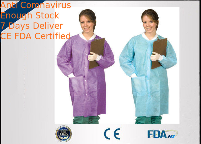 Il laboratorio eliminabile economico di vendita calda ricopre, cappotto sterile non tessuto del laboratorio con il polsino elastico